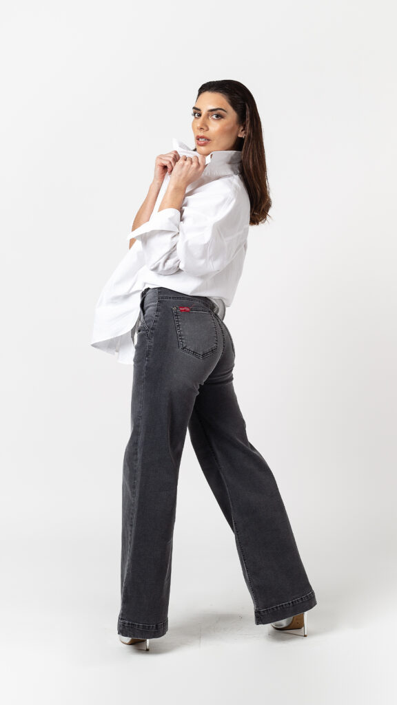 El palazzo denim que está marcando tendencia. Diseñado en tela elasticada para un calce perfecto y máxima comodidad, EMA se caracteriza por su basta ancha y movimiento fluido que estiliza al instante. Sus bolsillos tipo sastre aportan un toque elegante y sofisticado, mientras que su fit hondero y relajado lo convierten en una prenda versátil, ideal para elevar cualquier look.